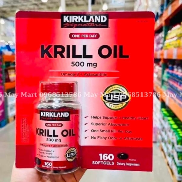 ➤ Dầu nhuyễn thể krill oil omega 3 đang được đánh giá rất cao trên thị trường. Sản phẩm của thương hiệu Kirkland uy tín và đã được USP chứng nhận về chất lượng và độ an toàn.